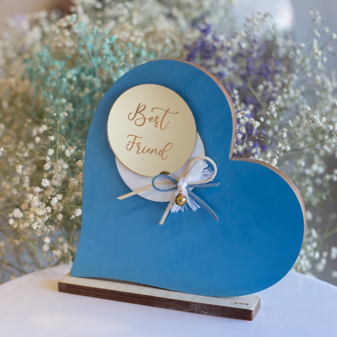 Ένα όμορφο και γλυκό δώρο σύμβολο της φιλίας. Μία μπλε καρδιά με αφιέρωση στον καλύτερο σου φίλο! Διακριτικό και όμορφο, ξύλινο χειροποίητο διακοσμητικό δώρο. Θα το λατρέψει!